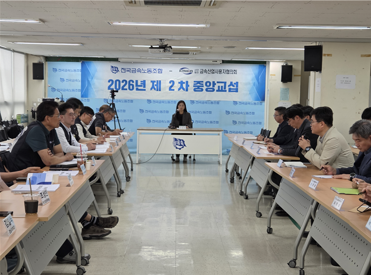 2026년 제 2차 중앙교섭 뉴스(260421) ▶ 금속노조 “초기업 교섭 활성화 위한 노사 공동 대정부 요구, 전향적으로 검토해”▶ 사용자협의회 “요구안 개수는 많지 않지만 어느 해보다 무거워… 충분한 고민 시간 필요” 2026년 제2차 중앙교섭이 4월 21일 14시에 개최되었다. 이날 교섭은 사용자협의회 교섭위원 9명, 금속노조 교섭위원 19명이 참석해 각 교섭단 성원 2/3 이상을 충족하여 성립 요건을 갖춘 후 시작되었다. 금속노조 박상만 위원장은 기조 발언에 앞서 전날 발생한 화물연대 고(故) 서광석 조합원 사망사고에 애도를 표하며, “원청 교섭 요구에 불응한 사측과 이를 묵인한 정부의 태도가 현장 갈등을 키우고 있다”라고 지적했다. 이어 박상만 위원장은 “1차 교섭에서 제안했던 초기업 교섭 활성화를 위한 노사 공동 대정부 요구를 먼저 잠정합의하고, 이를 바탕으로 정부를 상대로 필요한 제도 개선을 함께 요구하자”라며, “정부 관료들이 현장을 제대로 이해할 수 있도록 금속 노사가 먼저 목소리를 모아야 한다”라고 밝혔다. 이어 사용자협의회 박근형 회장은 “일어나서는 안 되는 안타까운 사고가 발생했다”라며 고인의 명복을 빌고, “유사한 사건이 재발하지 않기를 바란다”라고 말했다. 또한 “오늘은 노조가 제출한 요구안 설명을 충분히 듣고, 이후 분석과 검토를 진행할 예정”이라며, “노조 제안의 취지는 이해하나, 사용자협의회 내부에서도 적지 않은 고민이 필요하다”라고 밝혔다. 이어서 김상민 정책실장이 요구안에 관해 설명하였다. 김상민 정책실장은 올해 요구안을 크게 ‘금속산별협약 개정 요구’와 ‘금속산별협약 개정 외 요구’로 나누어 설명하며, 금속산업 최저임금은 산별협약 개정 요구로, 초기업 교섭 활성화·인공지능·정년연장 관련 요구는 협약 개정 외 요구로 제시했다고 밝혔다. <최저임금> - 내년도 금속산업 최저임금을 통상임금 시급 11,140원, 월 통상임금 2,618,040원 가운데 높은 금액으로 적용할 것.- 이는 금속노조 임금인상 요구 수준을 금속산업 최저임금으로 환산한 것으로, 금속산업 최저임금이 노동시장의 하단을 끌어올리는 역할을 해야 한다는 취지.- 지난해 중앙교섭 합의에 따라 올해 금속산업 최저임금이 2.66% 인상되었으나 법정 최저임금 인상률에도 못 미치는 수준이었음. 중대재해 대응 관련 요구 합의로 인해 불가피한 것이었으나, 올해는 작년보다 더 큰 폭의 인상이 필요함. <초기업 교섭 활성화 노사 공동 대정부 요구> - 노동시장 불평등과 이중구조 해소를 위해 초기업 교섭 활성화가 필요함. 정부 국정과제에도 관련 내용이 포함된 만큼, 금속 노사가 공동으로 제도 개선을 요구하자는 취지.- 1항과 관련, 중앙교섭과 지부 집단교섭에서 체결한 공익성 있는 협약의 효력을 산업·업종·지역으로 확장할 수 있는 제도 마련을 정부에 요구하자는 내용.- 2항과 관련, 초기업 교섭 참여 사업장에 대해 공공조달, 입찰, 기업지원, 세제 혜택 등 실질적인 인센티브를 제공해야 한다는 입장.- 3항과 관련, 정부와 지자체의 산업정책 수립·집행·평가 과정에 초기업 교섭 노사단체가 참여할 수 있는 거버넌스를 구축하자고 제안.- 4항과 관련, 이러한 요구를 일회성으로 끝내지 않고 지속적으로 추진·점검할 수 있는 노사정 협의 구조를 만들자는 취지. <인공지능 도입 시 노동인권 및 고용 보호> - 인공지능과 정년연장 관련 요구는 금속산별협약이 아니라 사업장 보충협약에 우선 반영하자는 입장. 새로운 노동조건 기준을 사업장 단위에서 먼저 확산·표준화한 뒤 산별협약에 반영하자는 취지.- 인공지능 도입과 활용이 고용과 노동인권에 미치는 영향을 고려해 사업장 보충협약에 관련 내용을 반영할 것을 요구. 인공지능이 노동에 도움을 줄 수 있는 반면 고용대체, 소득감소, 오남용 우려도 큰 만큼 사전적 보호장치가 필요함.- 2항과 관련, 작업공정이나 인사관리에 인공지능을 도입할 경우 사전 통보와 노사 공동 평가를 거쳐 고용, 교육훈련, 노동안전, 인권·개인정보 보호 대책을 마련한 뒤 도입하자는 내용.- 3항과 관련, 인공지능의 정보 수집·처리 방식, 개인정보 보호, 사용자 제공 정보, 실제 활용 권한 등에 관한 정보를 노조 요청 시 투명하게 제공해야 함.- 4항과 관련, 사용자가 인공지능을 이유로 부당한 인사조치를 정당화하지 못하도록 하자는 취지. <국민연금 수급과 연동한 정년퇴직> - 저출생·고령화·생산가능인구 감소에 대응하기 위해 국민연금 수급 시기와 연동한 정년조정이 필요하며 한국은 연금 수급보다 정년이 먼저 도래해 소득 공백이 발생하는 대표적인 국가인 만큼, 이를 해소할 제도 개선이 필요함.- 또한 일본식 계속고용·재고용 방식은 고령층 일자리의 질을 악화할 우려가 크다고 보며, 법정 정년연장이 필요하다는 입장.- 이에 국민연금 수급 시기와 소득 공백이 발생하지 않도록 정년을 조정하고, 이 과정에서 임금체계를 개편할 경우 반드시 노동조합과 합의하도록 하자는 내용 요구. 경남지부장은 "원청 대기업의 이익 독식 구조와 납품단가 문제, 부품사의 열악한 경영 여건을 함께 해결하기 위한 대정부 요구를 위원장이 